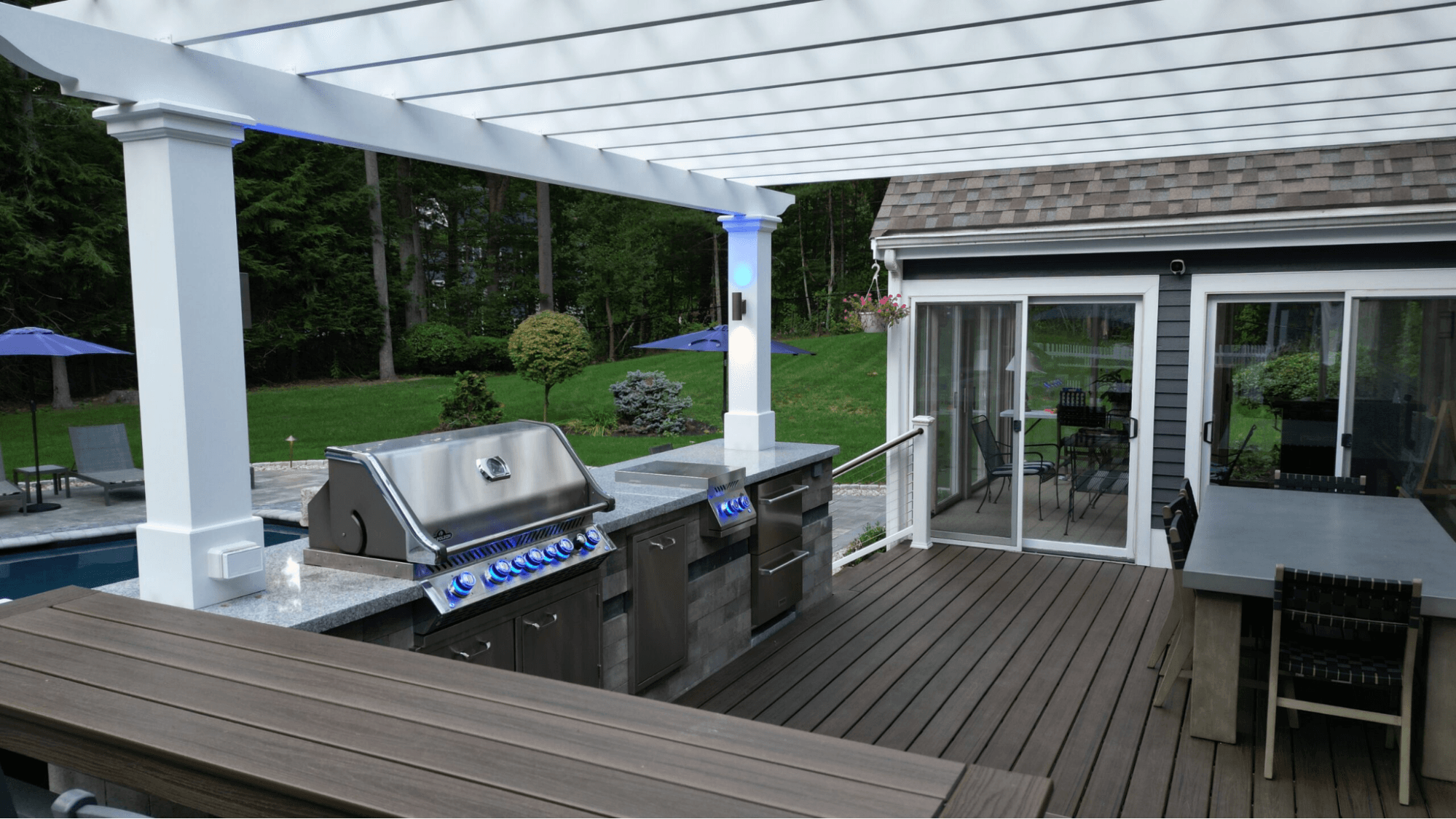 This approach is trending because homeowners want their outdoor spaces to function as true extensions of the home. People are spending more time outside, hosting gatherings, working remotely, and looking for spaces that feel comfortable, intentional, and usable in multiple seasons.